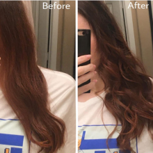 RESULTS | I used on my long, fine, frizzy hair that holds a curl reasonably well. I was able to achieve some curls as shown in the after photo, but it took quite a few redos of curling the same strands over because the initial curl either had a a flattened end or was more wavy then a curl. This is very easy to achieve waves with. Curls are a little bit more tricky, at least for long hair. I think this would be great for someone with short hair.