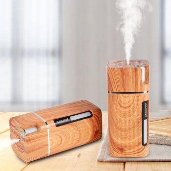 Ultrasonic Wood Grain USB Humidifier with Essential Oil Diffuser & LED Light